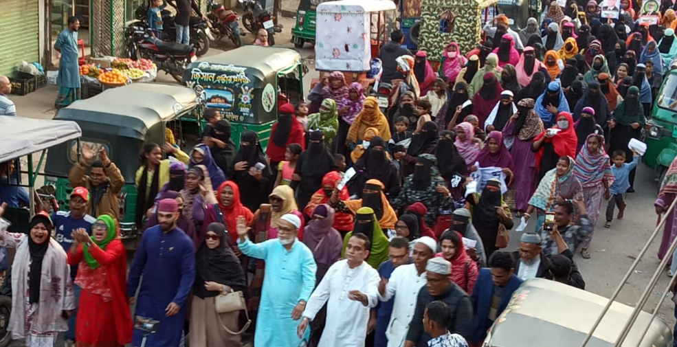কুলাউড়ায় ধানের শীষের সমর্থনে মহিলা দলের বিশাল মিছিল
