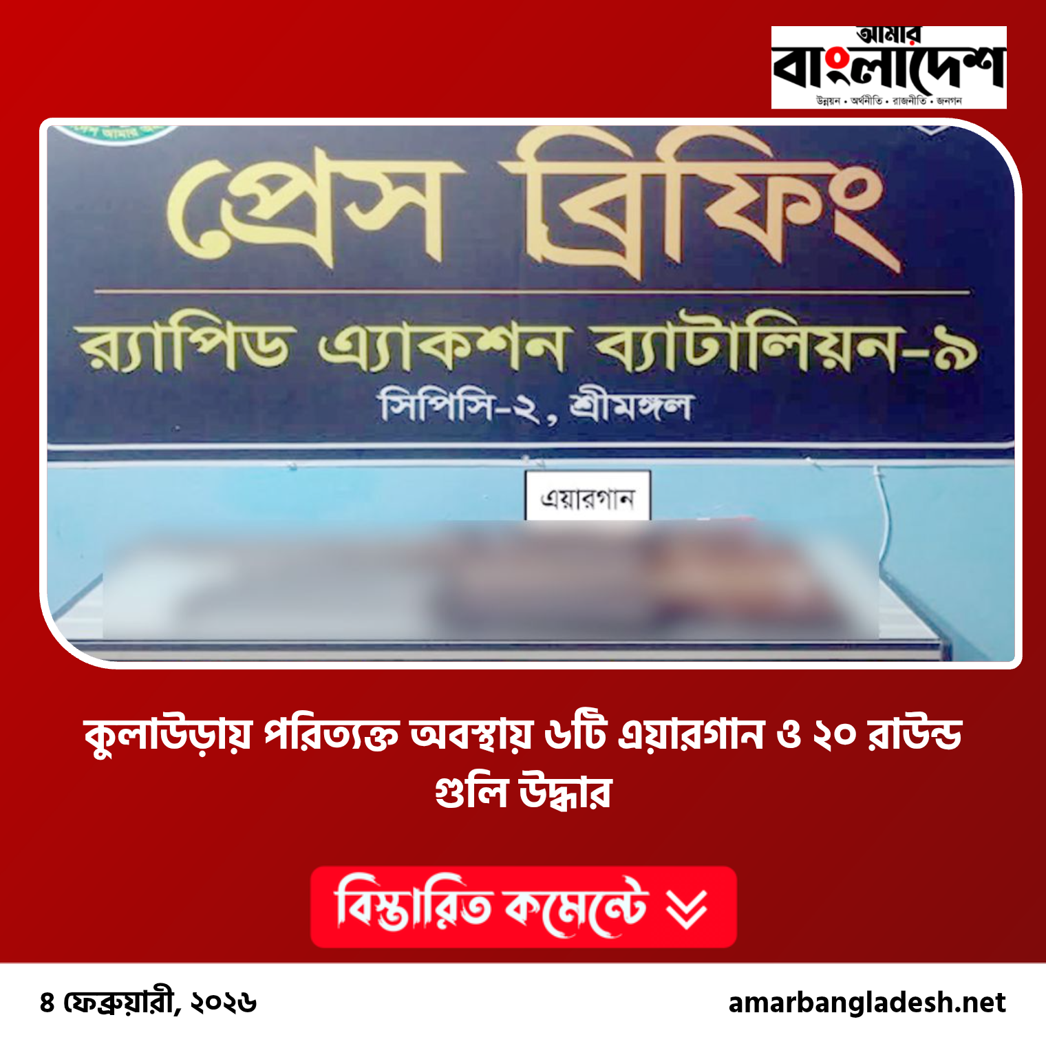 কুলাউড়ায় পরিত্যক্ত অবস্থায় ৬টি এয়ারগান ও ২০ রাউন্ড গুলি উদ্ধার